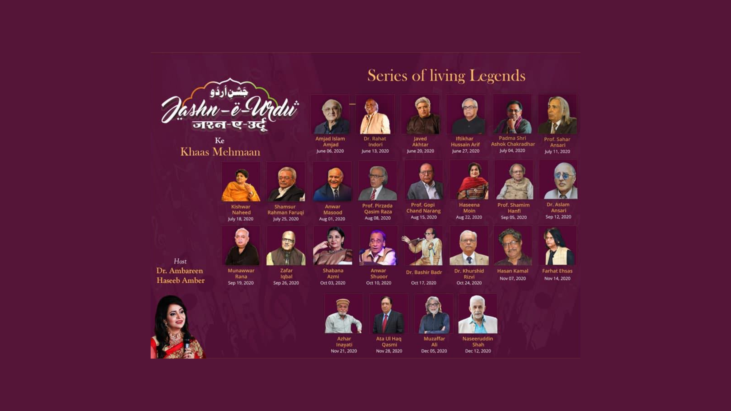 Jashn-e-Urdu takes great pride in organizing and inviting people to celebrate the rich culture and heritage of Urdu language. Events have been organized in Dubai and India over the past years, creating a community of people who share a fondness of Urdu and Hindi Poetry.